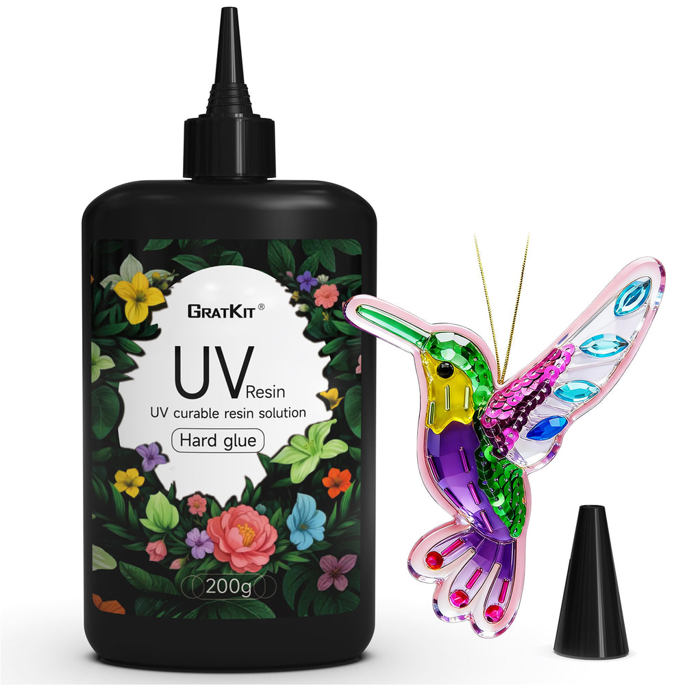 GratKit UV Resin Kit, 100g/200g/400g UV Resin with Rechargeable 395NM UV Flashlight, Fast Curing in Seconds, UV Glue Adhesive for Bonding Jewelry, Plastic, Glass Repair, w/Mat, Gloves, Storage Bag